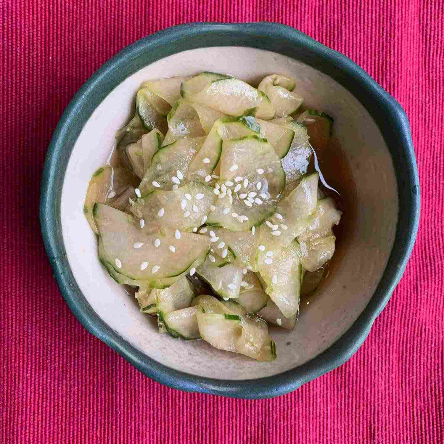 Refreshing Japanese cucumber salad with a tangy dressing.