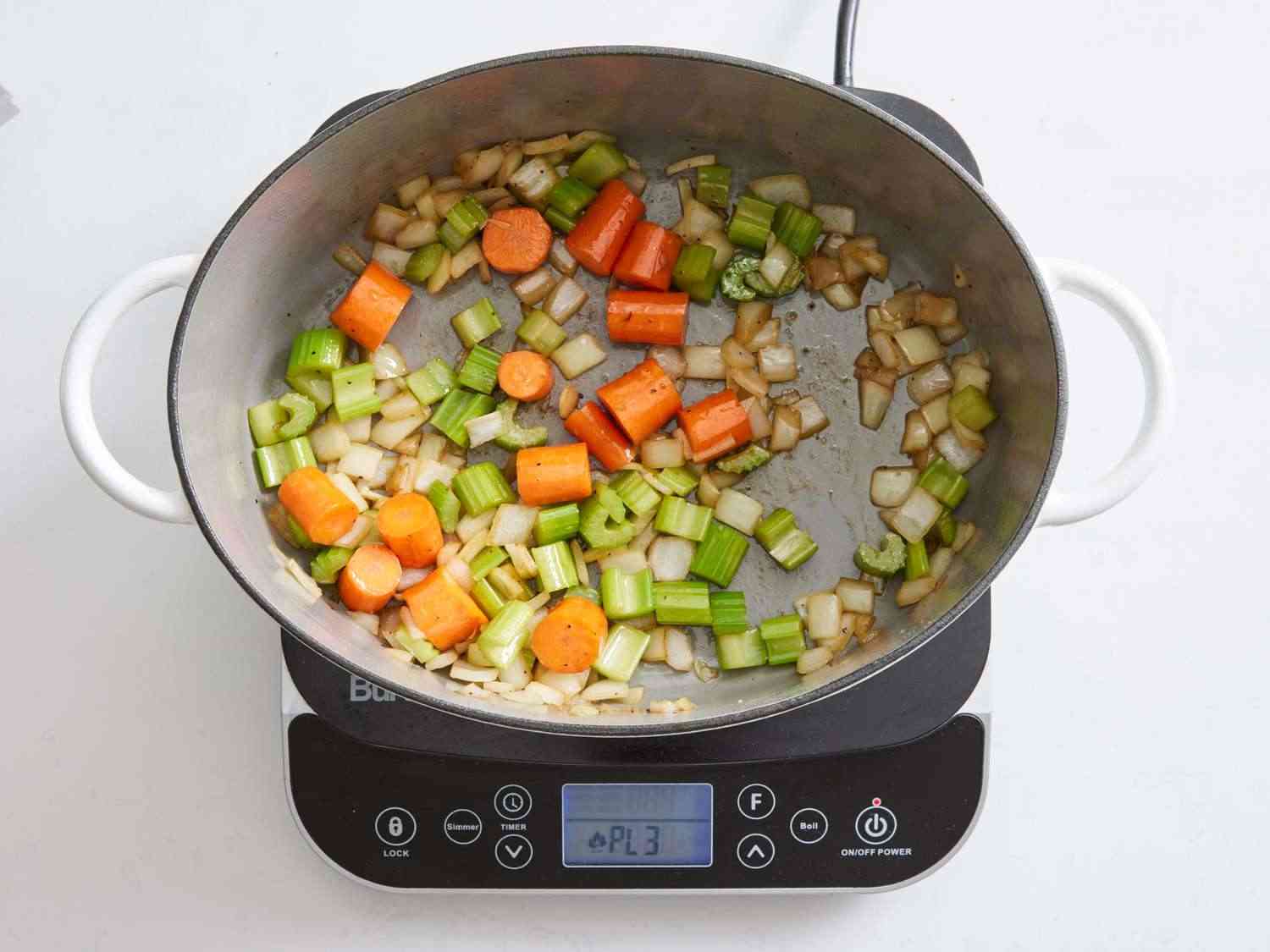 - Step 4:Add carrots, celery, and onion into the pot. Cook and stir until vegetables start to release their juices, scraping any brown flavor bits off the bottom of the pot, about 3 minutes. Dotdash Meredith Food Studios